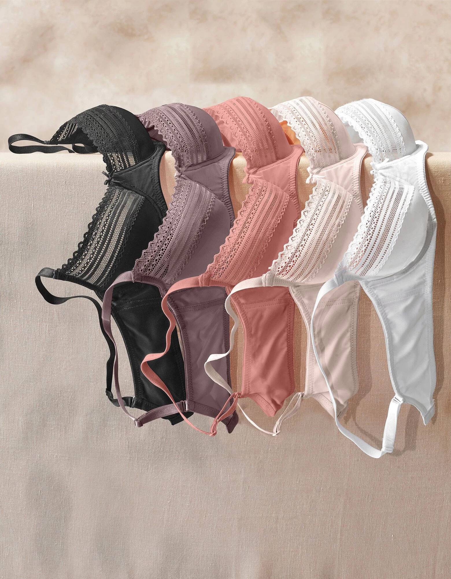 – Bonnets moulés avec application dentelle au décolleté